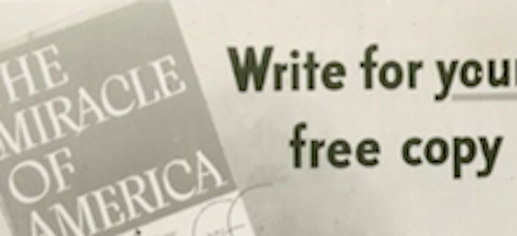 American factory workers received about half of the 1.84 million copies of the free pamphlet “The Miracle of America.” One-quarter were distributed free of charge to schools, and 76 universities ordered the booklet.